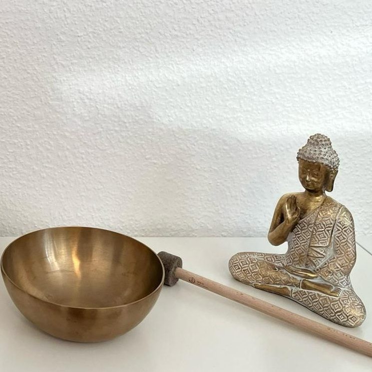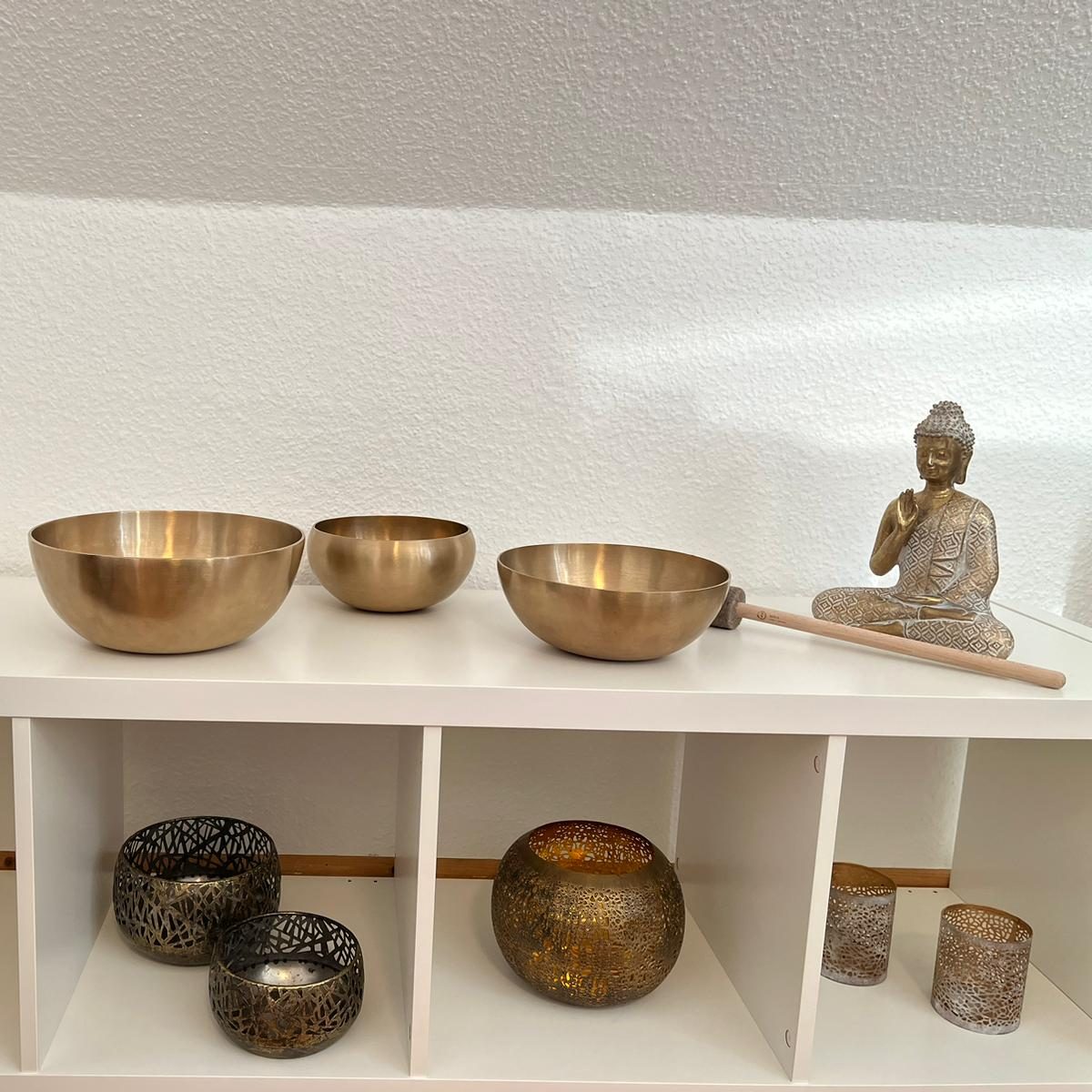 Beim Anspielen der Klangschalen wirst du vom Klang umhüllt.